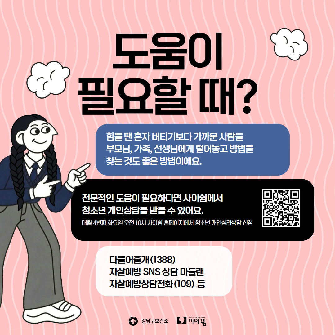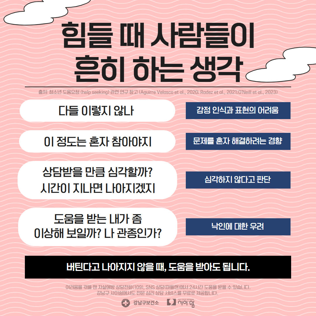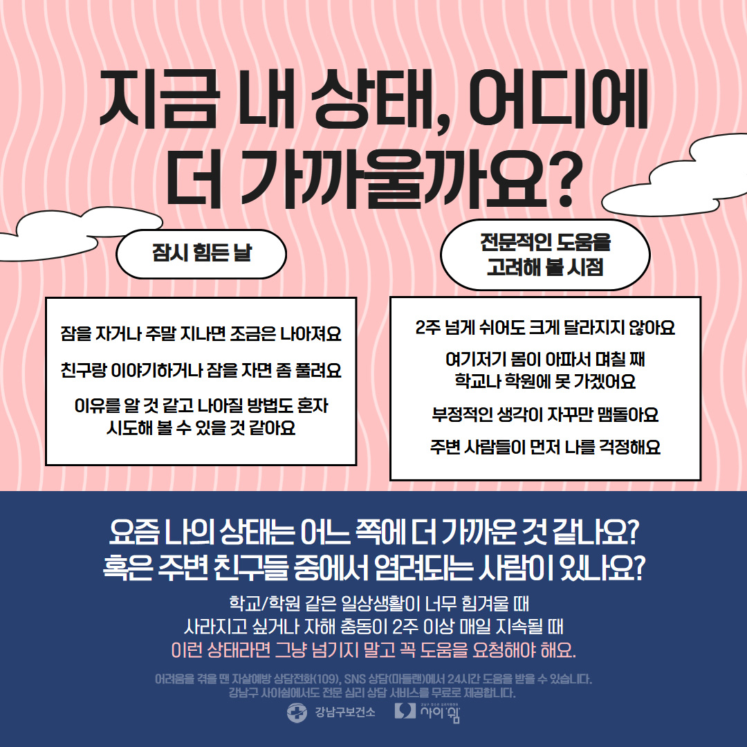 강남구청소년심리지원센터 사이쉼에서는 마음건강 카드뉴스를 정기적으로 발행하고 있습니다.