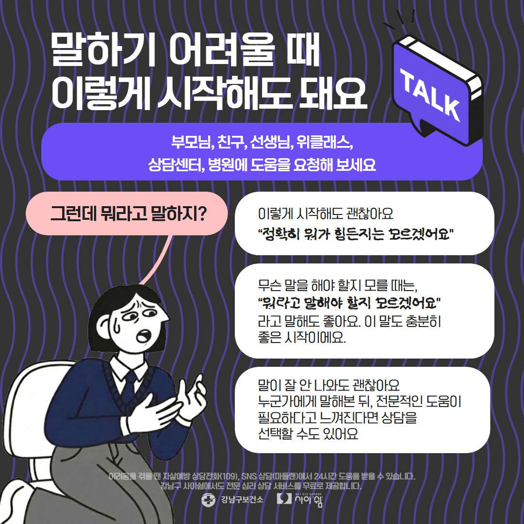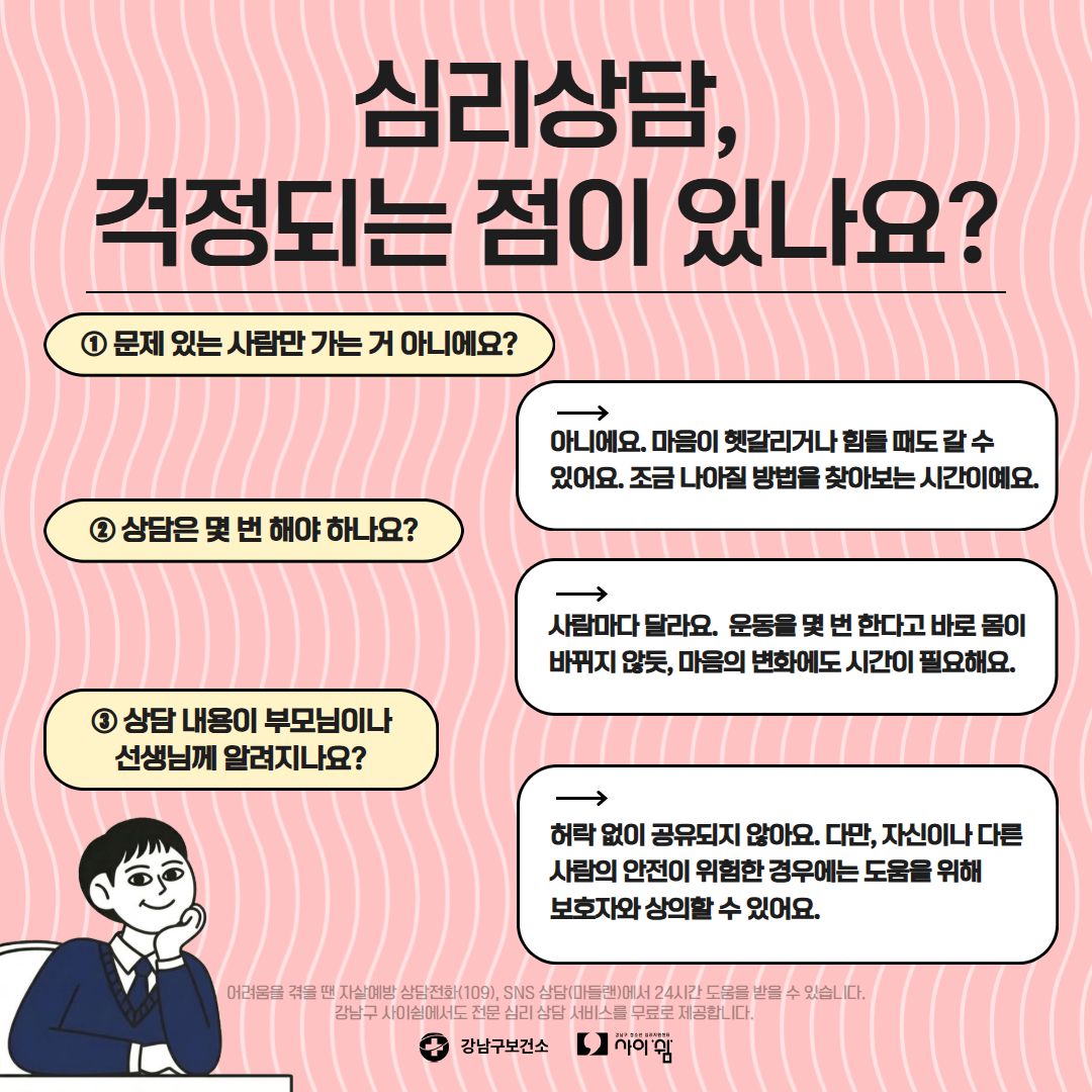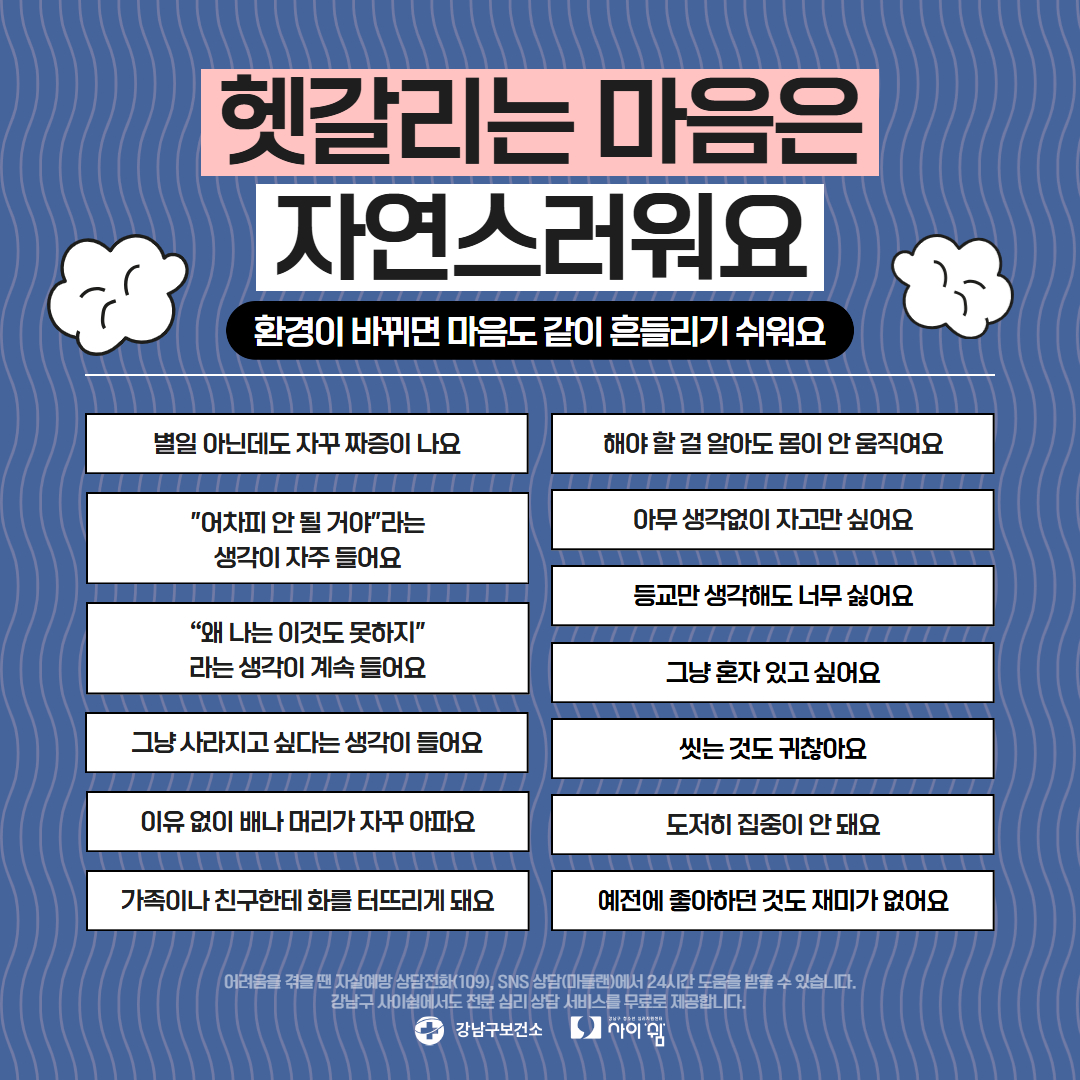 강남구청소년심리지원센터 사이쉼에서는 마음건강 카드뉴스를 정기적으로 발행하고 있습니다.
