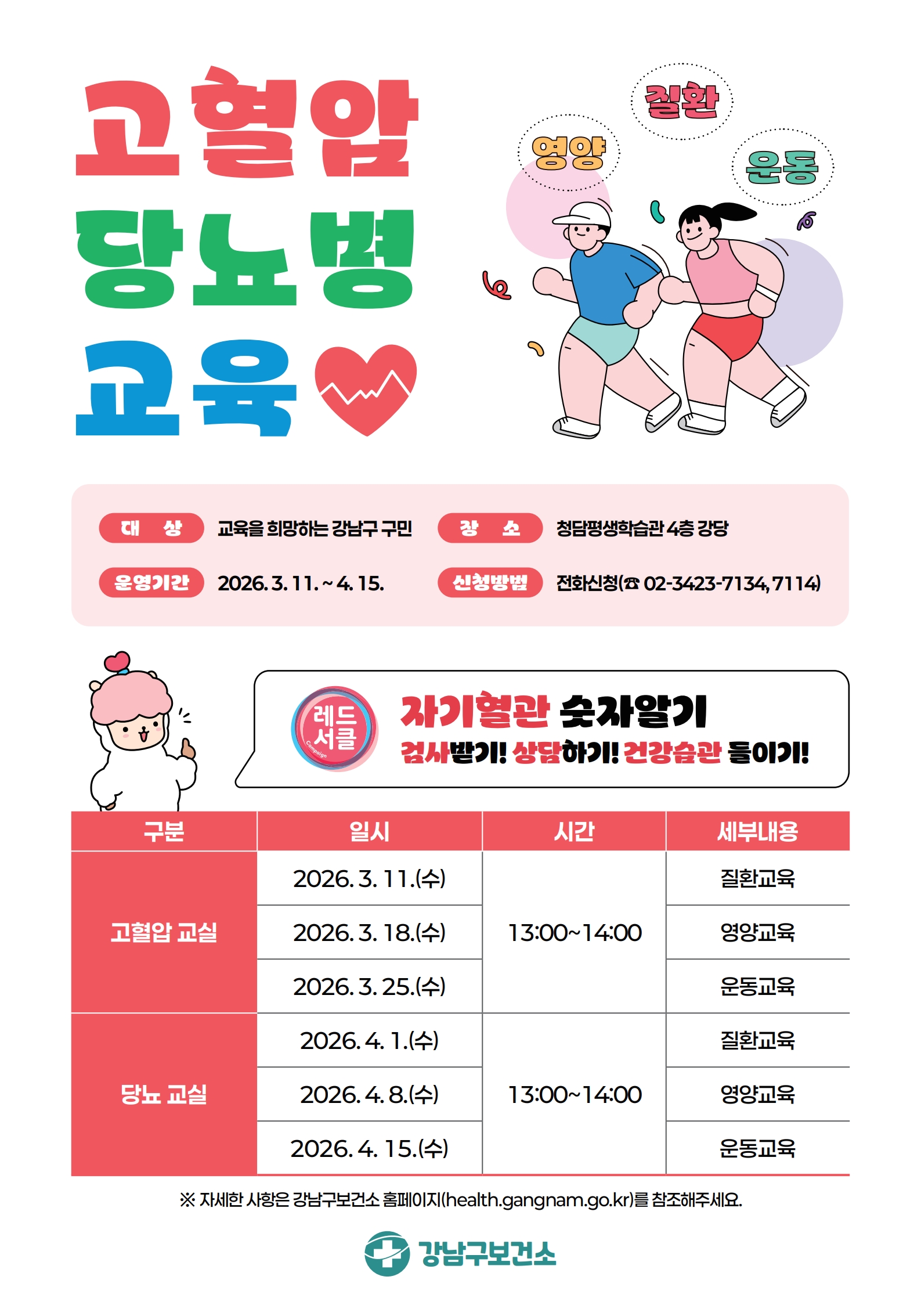 | 대상 | 사업장, 아파트, 동주민센터 등 만 20세~만 69세 구민, 직장인